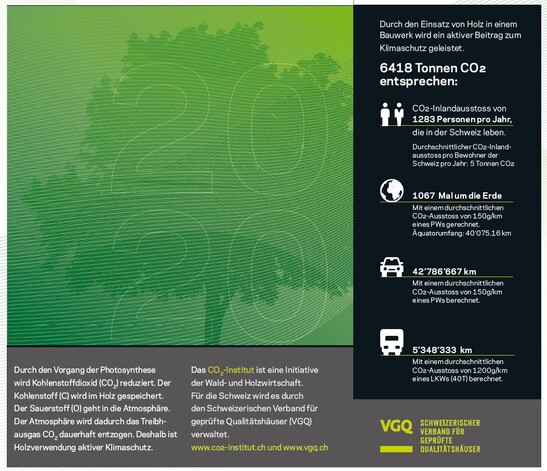 Heute ist Holzbau «best practice» - auch bei Grossprojekten wie dem «Krokodil». Und wer einen Beitrag zum Klimaschutz leisten will, der baut sowieso mit Holz. Denn: Holz ist das umweltfreundlichste Baumaterial der Welt. Es speichert CO2 langfristig und weist eine hervorragende Klimabilanz auf. Ein Kubikmeter Holz bindet bei seinem Wachstum eine Tonne Kohlenstoff. Der aktive Beitrag von Holzbauten wird bei Grossprojekten wie dem «Krokodil» eindrücklich bewiesen – das Zertifikat des CO2-Institutes ist der Beweis.