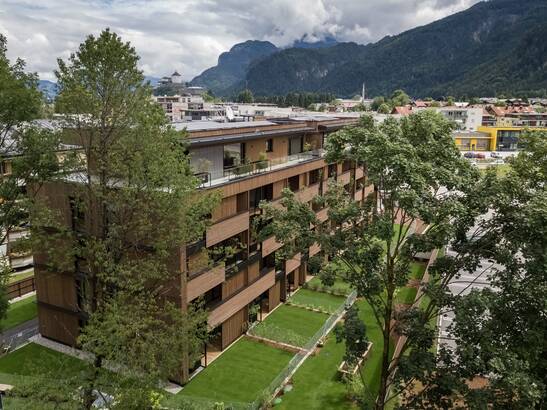 Das sogenannte «Naturquartier Weissache» ist das grösste Wohnhaus in Tirol und ein gutes Beispiel dafür, wie sich der Holzbau in den letzten Jahren entwickelte. «Holz ist ein nach- wachsender und regional verfügbarer Rohstoff. Gerade in Zeiten der Klimakrise und nicht zuletzt auch aufgrund von Corona steigt die Bedeutung von heimischen Materialien und kurzen Transportwegen», sagt Josef Feichtner, Geschäftsführer Unterberger Immobilien. Bestnoten erhält der natürliche Baustoff nicht nur für die ästhetischen Gestaltungsmöglichkeiten und die behagliche Atmosphäre, sondern auch hinsichtlich Wärmedämmung, Energieeffizienz, Brandschutz und Langlebigkeit.