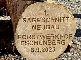 Baustart für den neuen Forstwerkhof Eschenberg: Nach intensiver Planung und Projektierung mit der Holzbaustatik von Timbatec soll der Werkhof Ende 2026 dem Forstbetrieb übergeben werden – eingeleitet durch den symbolischen Sägeschnitt der Stadträte.