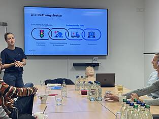 Ein Dankeschön geht an die kompetenten Teams und Kursleitungen der Sanio AG für die Durchführung der Gruppenkurse. Praktische Übungen zur Anwendung von theoretischem Wissen, die Herzdruckmassage an der Reanimationspuppe und das Bedienen eines Defibrillators vermittelte den Kursteilnehmenden Sicherheit für Notfallsituationen.