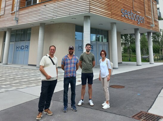 In wenigen Minuten Fussmarsch war der 2. Ausgangspunkt erreicht: Das Forum am Seebogen wurde von DI Josef Saller von studio heri&salli Architekten sehr charismatisch, wie auch der Holzbau selbst mit allen Überlegungen und dazugehörigen Stories präsentiert. Nachdem auch mit studio heri&salli momentan in gemeinsamen Projekten die Zukunft des Bauens revolutioniert wird, konnte der Geschäftspartner bei spezifischen Fragestellungen zum Thema Holzbau und Brandschutz während der Führung unterstützt werden. Danke studio heri&salli!