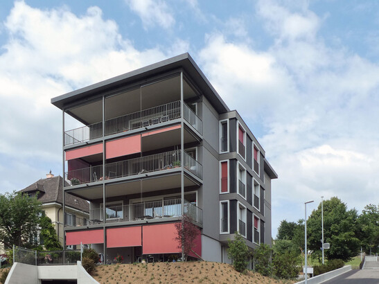 Beim Wohnhaus wurde alles, was über dem Boden liegt, in Holzbauweise erstellt. Sowohl die Wände, Decken sowie die Fassade als auch Treppenhaus und Liftschacht bestehen aus Holz. Um den Schallschutz zu gewährleisten, wurden die Geschossdecken aus Massivholz mit einer Splittschüttung versehen. Auf dem Dach des Mehrfamilienhauses, das den Minergie®-P Standard erfüllt, wurde eine Fotovoltaikanlage für die Energiegewinnung installiert.
