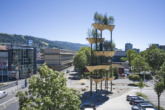 «Semiramis» ist nicht nur in der Montage und der Produktion eine hochkomplexe Angelegenheit. Die fünf Pflanzenschalen sind alle unterschiedlich geformt und haben einen Durchmesser von bis zu 10 Metern. Die schlanke und hohe Struktur wird üppig mit grossen Büschen und Bäumen bepflanzt und hat damit ein stattliches Eigengewicht.