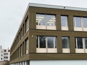 Das Gebäude ist als Hybridbau umgesetzt. Die Tragstruktur in Massivbauweise wurde vorgänig erstellt und mit Aussenwandelementen in Holzrahmenbauweise bekleidet.