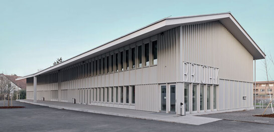 Der gesamte Bau ist als Holzrahmenbau geplant worden. Die Treppenanlagen hingegen sind in Stahlbauweise ausgeführt. Ein spezielles Augenmerk ist sicher das gegen Westen ausgerichtet Vordach, welches bis zu fünf Meter auskragt.