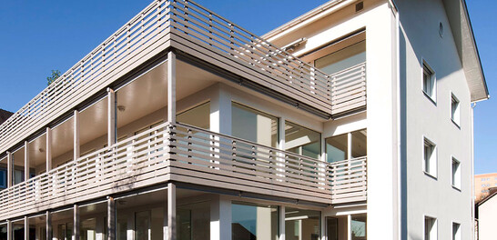 Die Grundlage Im Zuge einer Gesamtsanierung wurden Wohnungen durch einen Anbau in Holz erweitert. Der so entstandene Wohnraum mit Veranda stellt einen Mehrwert für die Wohnungen im Parterre und im 1. OG dar. Auf der neuen Flachdachfläche sind zwei einladende Terrassen entstanden, die zu den Wohnungen im 2.OG gehören. Mit einer vorgefertigten neuen Aussenhülle wurde das Gebäude auf Minergie-P Standard aufgerüstet.