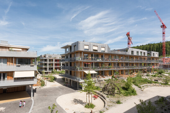 Am Rande des Ostermundigenberg entstand die autofreie Holzbau-Siedlung «Oberfeld Ostermundigen» mit rund 110 Wohnungen. Naturnah und doch schnell im Zentrum verbindet die Siedlung die Vorteile des urbanen Lebensstils mit ländlicher Idylle.