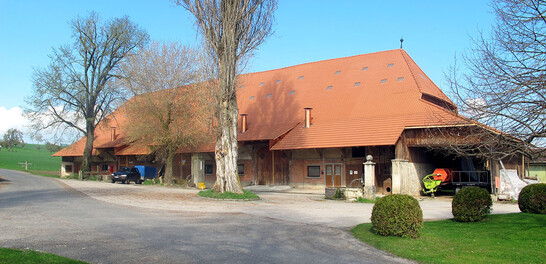 Afin de garantir la capacité portante de la grange sous les charges existantes et les charges supplémentaires, comme par exemple la grue à foin, de nouvelles fermes à trois articulations ont été installées sous la structure existante. Au niveau du rez-de-chaussée, les murs et les plafonds ont été déplacés et renforcés afin de répondre aux exigences d'utilisation de l'élevage moderne. Sur toute la longueur de la grange, un nouveau grappin a été installé dans la zone de délai afin de pouvoir distribuer le fourrage dans les boxes souhaités.