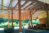 Grâce à cette construction, l'abri de 16 x 21 mètres n'a pas besoin d'autres éléments de renforcement comme des entretoises ou des arcs. Cette construction passionnante, réalisée avec des pins Douglas issus de nos propres forêts, a été récompensée par le prix du bois 2017.