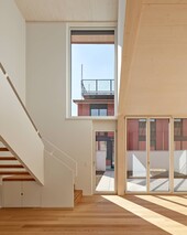 Nous nous sommes occupés de ce lotissement à Rain. Le garage souterrain existant a été suffisamment renforcé pour que les bâtiments de deux étages puissent être construits au-dessus. Au-dessus du sol, tout a été construit en bois avec des plafonds en bois visibles. Il a fallu tenir compte de la physique du bâtiment en raison de la présence d'une route principale très fréquentée.