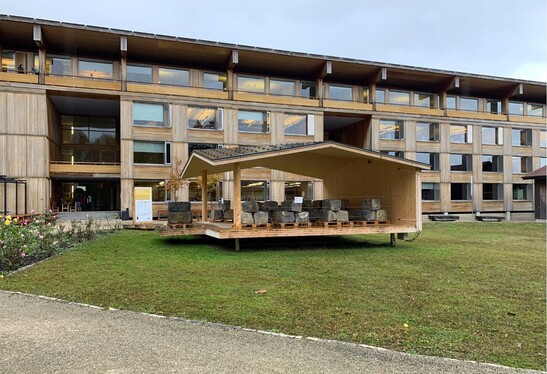 Around 100 people celebrated with the developers of the TS3 technologies and experienced live how the TS3 experts glued wood components on the front side. With the endurance test rig is used to test and demonstrate the possible applications of the TS3 system. It has been in the inner courtyard of the BFH Department of Architecture, Wood and Building (AHB) in Biel. Since the inauguration of the permanent test stand, the TS3 technology has been has been used in the first construction projects.