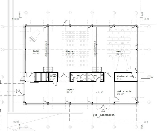 access zones and the foyer. The almost 240 m² large multi-purpose room on the