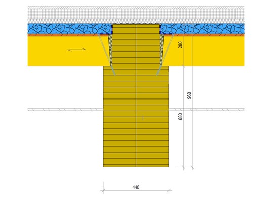 A glued laminated timber beam made of Swiss beech wood beech wood spans the rooms. It transfers the loads from the upper floors to the outer walls. the outer walls. The beam has a dimension of 96x44cm. Thanks to clever construction and the suspended ceiling, only about 40 centimeters of the centimeters of the beam are visible.