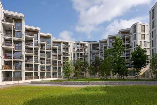 Attractive cooperative apartments with more living space were built on the highly frequented Bucheggplatz. Thanks to an increased utilization rate and revised building regulations, the buildings are larger and higher than their predecessors. Rooms such as kitchens, dining rooms and staircases face the street. Thus, the private living rooms and bedrooms are better protected from noise. The floor plan is chosen in such a way that frontal views into the opposite apartments are avoided. Towards the south, the apartments open onto a spacious inner courtyard, which is optimally protected from street noise.