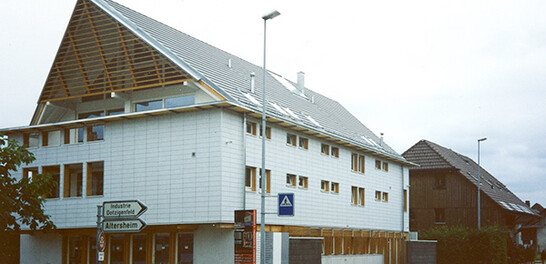 The plot of land The plot of land is bordered on all sides by built-up areas. The building is primarily oriented to the main road and refers to the existing buildings. It contains a total of 5 apartments, 2 of which have been combined to form a retirement and nursing home group.