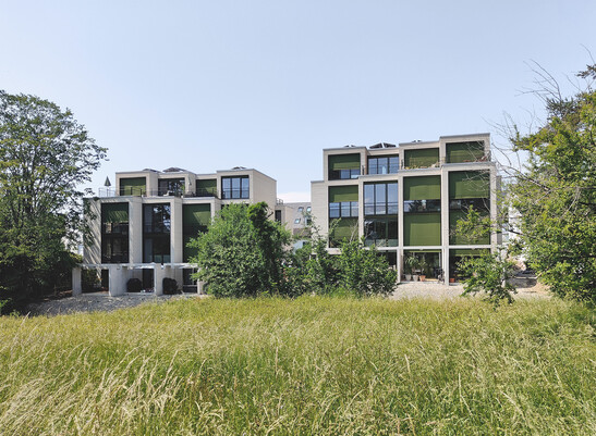 Eight terraced single-family houses were built on the outskirts of Zurich using a hybrid construction method. Four houses were combined into one building. The single-family houses consist of a basement, three full storeys above ground and an attic storey.