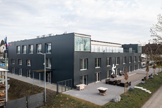 The skeleton construction on the first floor with the almost 9 m wide storage units enables a very economical construction method thanks to the additional beam in the middle of the hall. In the canopy, the beam layer spans the entire width of the respective rental unit. Thanks to the large-format and visible cross-laminated timber panels, the construction time could be kept short.