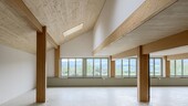 The office building is designed entirely as a timber construction from the ground floor upwards, including the enclosed stairwell and lift shaft. To improve the indoor climate and highlight the history of the building site as a brickworks, the stairwell was walled in with unfired clay bricks. The commercial building combines a variety of uses such as workshops, storage rooms, and offices under one roof. A 10-ton crane is installed on a crane runway made of construction beech in the 8-meter-high workshop. The flat roof houses a large 1,300 m² photovoltaic system that generates sustainable energy. The project combines modern timber construction with historical elements and sustainable energy production.