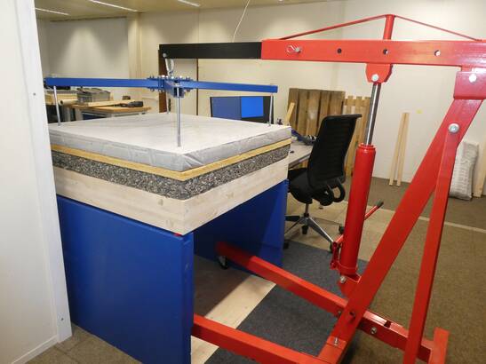 We test innovative floor structures with comparative measurements for our customers in our impact sound test bench. The impact sound test bench is the result of several bachelor theses at the Bern University of Applied Sciences in Biel.