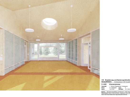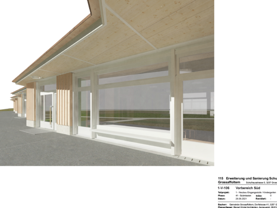 Die gesamten Bauarbeiten der Schulraumorganisation Grossaffoltern (Neubau sowie Umbau des bestehenden Schulhauses) dauern rund zwei Jahre und sollen bis Ende 2024 beendet sein. In einem ersten Schritt wird entlang der Schulhausstrasse ein vom Bestand komplett abgelöster eingeschossiger Neubau aus Holz mit den Klassenzimmern für die Eingangsstufe gebaut. Der Neubau kann hier live mitverfolgt werden: LINK