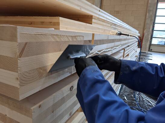 Die TS3-Technologie ist ein neues Bausystem mit einer biegesteifen Verbindung in der Ebene zwischen Brettsperrholzplatten. Die TS3-Verbindung mittels Fugenverguss ermöglicht den Bau von unterzugsfreien Skelettbaustrukturen aus Holz mit schlanken, punktgestützten Platten. Durch Aktivierung der sekundären Tragrichtung können mit Holz die gleichen Decken gebaut werden wie mit Stahlbeton, und das lediglich mit herkömmlichem Brettsperrholz und der TS3-Verbindungstechnologie. Für die Herstellung von TS3-Fugen schult die Timber Structures 3.0 AG Zimmereien und Holzbauer. Mehr dazu finden Sie hier.