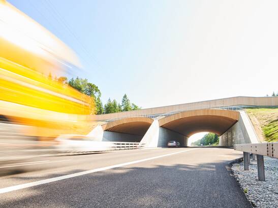 Wenn Tiere bei Suhr die Autobahn A1 überqueren, merken sie nicht, dass sie über die schweizweit erste Wildtierbrücke mit einer Holzüberdeckung gehen. Für sie ist wichtig, dass ihre Gebiete jenseits der Autobahn wieder erschlossen sind. Weil Verkehrswege die Lebensräume der wildlebenden Tiere durchtrennen, legt das Bundesamt für Umwelt Wildtierkorridore von überregionaler Bedeutung fest, die mit entsprechenden Bauwerken wiederhergestellt werden. Zwischen Gränichen und Suhr ermöglicht die 50 Meter breite Holzkonstruktion den Wildtieren das sichere Überqueren der Autobahn.