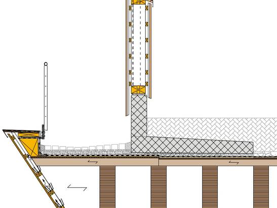 Durch übermässigen Feuchteeintrag, verbunden mit einem schlechten Austrocknungsverhalten, kann Holz bereits nach kurzer Zeit durch Fäulnis oder Insekten befallen werden. Mehrlagige Abdichtungen und eine Drainageschicht schützen die Holzüberdeckung vor Sickerwasser. Oberflächenwasser aus Sprühnebel der Fahrzeuge muss möglichst ungehindert und rasch abfliessen. Dazu ist zwischen den Betonuntergründen und den Holzbauteilen ein ausreichend grosser Abstand ausgebildet. So sind die Auflagerbereiche gut luftumspült und können austrocknen. Eine austauschbare und hinterlüftete Holzverkleidung bei der Portalverkleidung schützt die darunterliegende Konstruktion vor Witterungseinflüssen und Fahrzeug-Gischt.