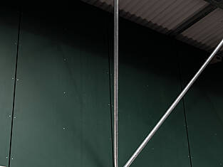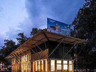 Angesichts der begrenzten Nutzungsdauer des Gebäudes (ca. 10 bis 15 Jahre) wurde auf eine hohe Rückbaubarkeit geachtet. Die Konstruktion ist so gestaltet, dass sie problemlos in Einzelteile zerlegt und recycelt werden kann. So wurden keine Verbundmaterialien oder Klebeverbindungen verwendet, sondern möglichst gut trennbare Einzelkomponenten.