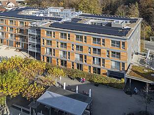 «Wer mit eigenem Holz baut, erhält ein Gebäude mit Mehrwert und schafft sich gleichzeitig den emotionalen Bezug zum eigenen Rohstoff». Zum Fokusthema «Planen und Bauen mit eigenem Holz» fanden im 2-geschossig neu aufgestockten «Esslinger Loogarten» Impulsreferate sowie eine Podiumsdiskussion statt.