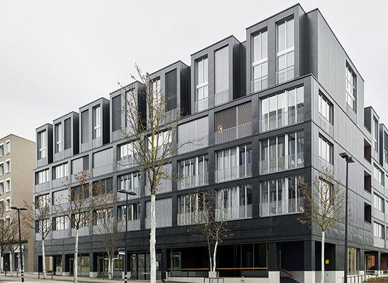 Die 98 Wohnungen vom Typ MIN haben 1,5 bis 3,5 Zimmer und sind zwischen 40 und 80 m2 gross. Zudem hat es in der Siedlung drei 180 m2 grosse Wohnungen vom Typ MAX, die für Wohngemeinschaften konzipiert sind. Mit diesem Konzept richtet sich die Überbauung MIN MAX an Studierende, Alleinstehende, Kreative oder Berufseinsteiger. Sie finden hier ein günstiges Daheim an zentraler Lage. Die Ausführung Bis ins dritte Obergeschoss wurde MIN MAX als Hybridbau erstellt. Das Tragwerk wurde als massiver Skelettbau ausgeführt, die nicht tragenden Aussenwände wurden aus Holzelementen vorgefertigt und nach dem Betonieren montiert. Die oberen beiden Geschosse sind ein reiner Holzbau. Die Aussen- und Innenwände bestehen aus Rahmenbauelementen, die Dachkonstruktion aus Hohlkastenelementen.
