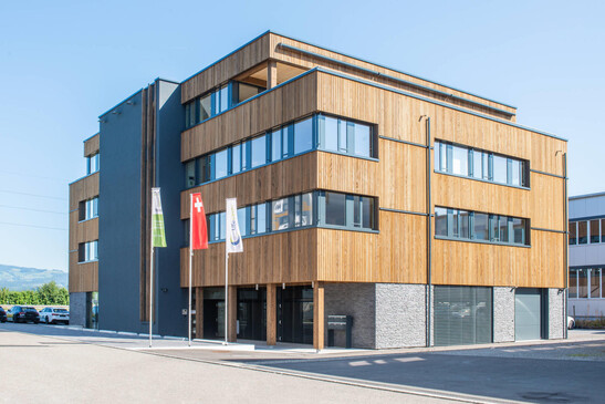 Die Firma Trinova Nutrition Holding AG ist in der Vergangenheit stark gewachsen. Der bisherige Firmensitz wurde zu eng und musste ersetzt werden. Der Neubau Bürogebäude besteht aus 4 Vollgeschossen über Terrain. Drei Geschosse und ein Attikageschoss bilden mit einem leicht vorgesetzten Treppenhaus den Baukörper. Der Neubau wurde aus Schweizer Holz in Elementbauweise erstellt. Timbatec war auch für den Schallschutz zuständig.