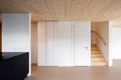 Die Wände sind in Rahmenbau mit der Ausnahme der aussteifenden Wände, welche in Brettsperrholz gefertigt sind. Für die Geschossdecken wurde Brettsperrholz verwendet, welche mit einer Schüttung für die Leitungsebene und den Schallschutz belegt wurde. Das Treppenhaus ist mit gekapseltem Brettsperrholz erstellt.