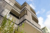 Das Mehrfamilienhaus besitzt ein Untergeschoss mit Tiefgarage, Technik und Kellerräume in Stahlbeton. Darüber sind 4 Geschosse in reiner Holzbauweise mit Holztreppenhaus und Gebäudeaussteifung. Die Fassade ist mit einer vertikalen Holzschalung ausgebildet und für den Brandschutz mit Schürzen versehen.