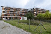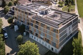 Für die Aufstockung kam die TS3-Technologie zum Einsatz, bei der Brettsperrholzplatten längs- und stirnseitig mit Giessharz verbunden werden. So entstehen massive, zweiachsig tragende Deckenplatten, die Lasten präzise und effizient auf die tragenden Wände und Stützen der bestehenden Massivbaugeschosse ableiten – diese Bauweise zeichnet sich durch die hohe Tragfähigkeit aus und ermöglicht schlanke Konstruktionen in Holzbauweise.