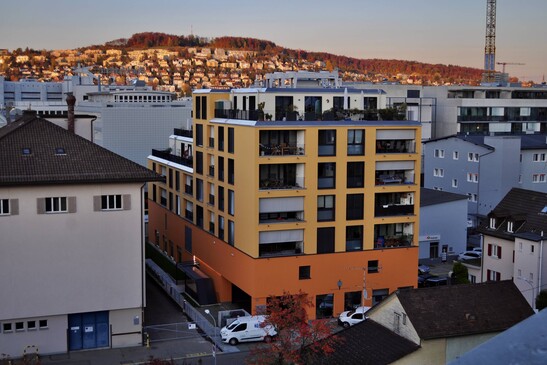 Das Untergeschoss bis und mit 1. Obergeschoss sind in Massivbauweise erbaut. Die darüberliegenden Etagen des Gebäudes mit den Wohnungen sind in Holzbauweise erstellt. Für die Aussenwände kamen konventionelle Holzelemente zum Einsatz. Die Decken bestehen aus Hohlkastenelementen, vereinzelt wurden aus brandschutztechnischen Gründen Vollholzdecken eingesetzt.