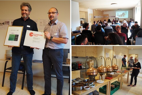 Dans le cadre de Dans le cadre de la manifestation HOLZarchitekTOUR organisée en collaboration avec l'Initiative Bois BE, le premier sous-sol en bois a été inauguré. le premier sous-sol en bois de Suisse a été inauguré. Dans la salle polyvalente de ce même sous-sol, plus de 45 personnes se sont réunies pour l'inauguration et ont assisté à des exposés sur le bois. des exposés passionnants du maître d'ouvrage, des planificateurs et des partenaires de recherche.