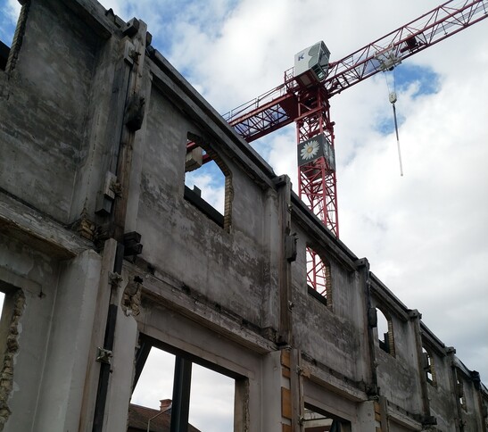 La construction en bois derrière une façade existante nécessite une prise de mesures particulièrement précise et une construction qui se subordonne à l'existant. Le résultat : la sécurité de la vieille ville derrière la façade en briques et, en même temps, les avantages d'une construction en bois moderne au cœur de la ville.