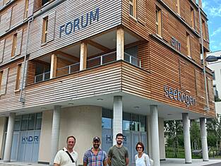 Le deuxième point de départ a été atteint en quelques minutes de marche : le Forum am Seebogen a été présenté de manière très charismatique par DI Josef Saller de studio heri&salli architectes tout comme la construction en bois elle-même avec toutes les réflexions et les histoires qui s'y rapportent. Étant donné que l'avenir de la construction est actuellement révolutionné dans le cadre de projets communs avec le studio heri&salli, le partenaire commercial a pu être soutenu pendant la visite pour des questions spécifiques sur le thème de la construction en bois et de la protection contre les incendies. Merci au studio heri&salli !