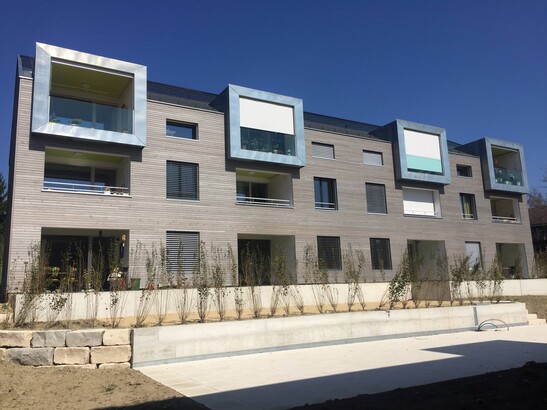 Le projet "Hausgemeinschaft 2. Lebenshälfte Muttimatte" a pour objectif de permettre aux personnes de plus de 60 ans de mener une vie communautaire, autodéterminée et individuelle. Les habitants du lotissement à Brügg près de Bienne doivent pouvoir vivre le plus longtemps possible de manière autonome dans leur propre environnement résidentiel. Les 27 appartements disposent de 2,5 à 3,5 pièces et ont une superficie de 46 m2 et 75 m2 de taille. Toutes les zones sont sans seuil et accessibles en fauteuil roulant.