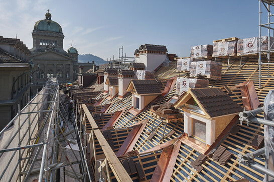 Dans un premier temps, le nouveau maître d'ouvrage PSP Swiss Property a fait examiner les bâtiments sous toutes les coutures. Au moyen d'un examen stratigraphique, les murs, les plafonds et les sols ont été sondés et les couches de peinture ont été enlevées couche par couche afin de voir ce qui se cachait derrière. Au 27 de la Bärenplatz, la maison la plus proche de la place fédérale, un mur entièrement peint a pu être mis à jour, montrant un arbre généalogique datant de 1685. De telles découvertes sont uniques et seront conservées. Les peintures ont été restaurées en douceur et intégrées dans un appartement.