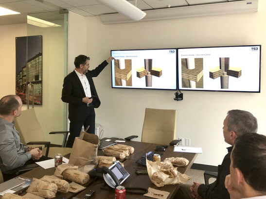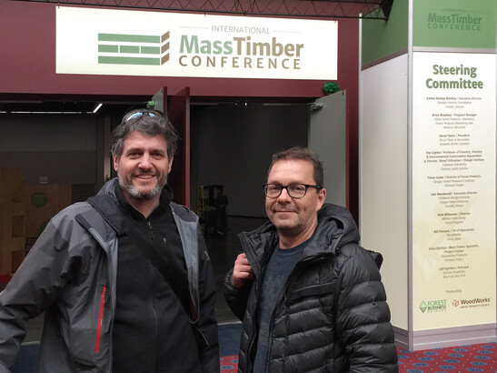 Stefan Zöllig and Marcel Herzog from TS3 were on the road in North America for almost three weeks. They were able to present their new technology to an international audience of experts at several meetings and with a presentation at the MassTimber Conference in Portland.