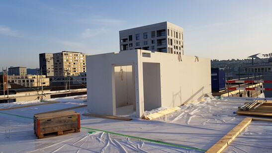 Two minutes' walk from Zurich Altstetten station, a new apartment building is being built with over 30 apartments on seven floors. Since the tight space conditions do not allow access for the fire department everywhere, Timbatec's engineers planned a safety stairwell - made of wood.