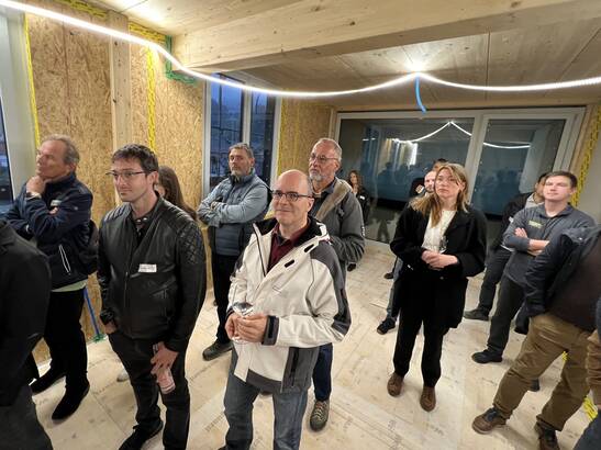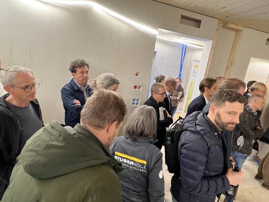 The new apartment building «Scherli», built in sustainable timber construction and according to Minergie-P standards, is convincing both aesthetically and functionally. Guided tours of the building and a welcome address by Michael Leuenberger were followed by keynote speeches by the architects (Adrian Habegger and Andy Plüss), the timber construction engineering firm (Philipp Lutz and Lukas Rüegsegger) and the timber construction company (Nik Stuber).