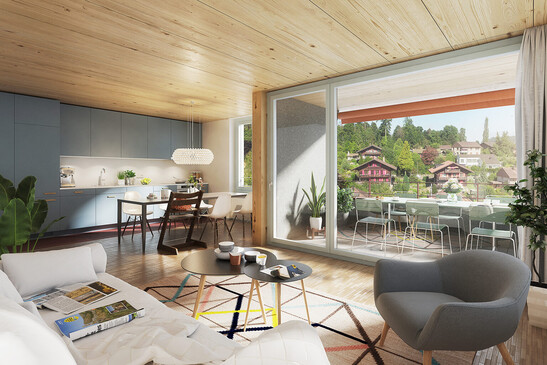 Internal densification, consistent timber construction and sustainability, digital project planning in BIM, mobility behavior and dispensing with a parking garage: the new building project with 22 rental apartments near the Niederscherli train station combines all these current topics.