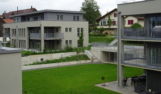 The municipality of Müntschemier is located in the Bernese Seeland - about 20 minutes from the cities of Bern, Biel and Neuchâtel. Young and old alike will find a suitable home in the new development, which consists of apartment buildings as well as terraced single-family houses with different levels of space. Attics in timber construction are located on all six massive structures. Timbatec accompanied the architects as timber construction engineer for the housing development. We solved the details of statics and fire protection.