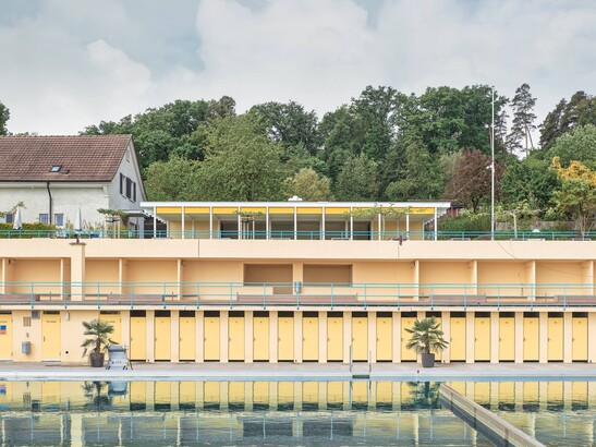 The kiosk and toilet building is connected to the residential building. With the replacement building, the residential building will be freed, and the kiosk will be created as a separate building. The serving and return area of the new kiosk also faces the pool and has a generously covered seating area. The enclosed area houses the kitchen, dishwashing station, refrigeration units and restroom.